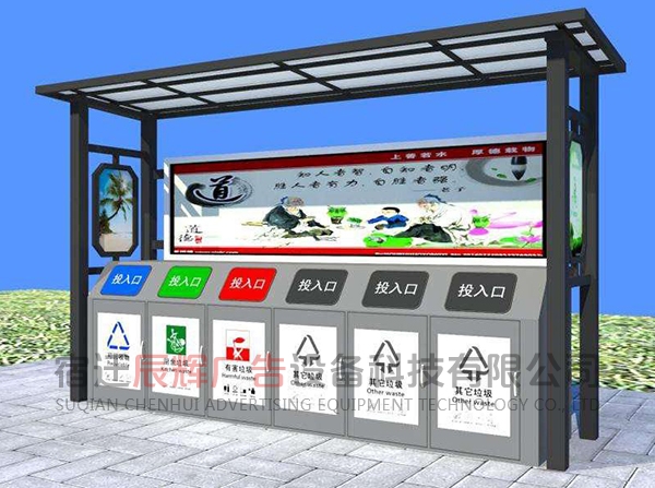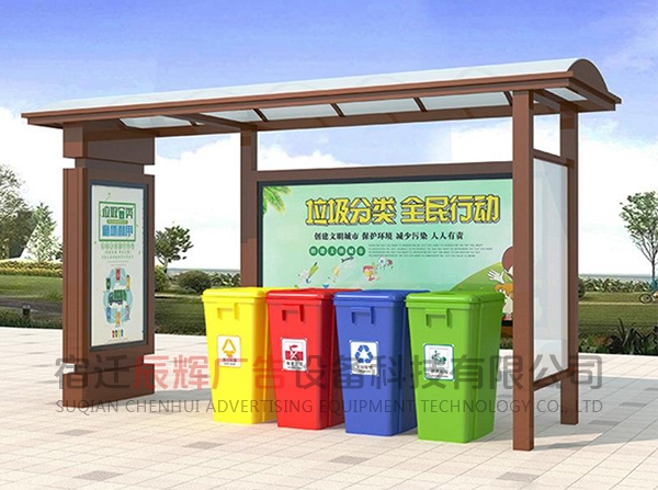 垃圾分類亭一般放在小區(qū)或者公共的地方集合垃圾之用。同樣的材料也可制成配電房、報(bào)亭、崗?fù)ぁ⒕皡^(qū)休息室等。宿遷辰輝廣告設(shè)備科技有限公司,我們的產(chǎn)品豐富多元化,應(yīng)用場(chǎng)景廣泛,也可以根據(jù)客戶的需要來圖定做。